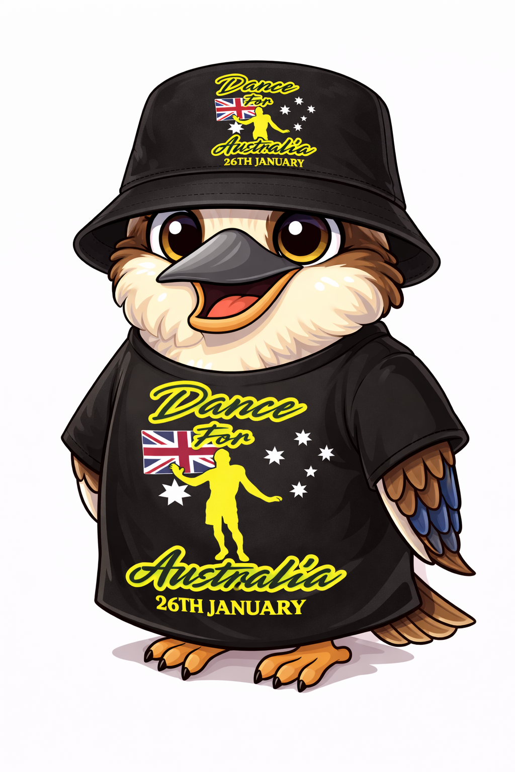 Meet Kooki, The Dance For Australia Mascot. Be like Kooki, be the first to check out our latest collections, featuring fresh designs and vibrant expressions of Australian Identity, and pride. Perfect for celebrating special occasions or adding a touch of Aussie spirit to your everyday wardrobe. Don't miss out on the newest ways to showcase your love for Australia!
